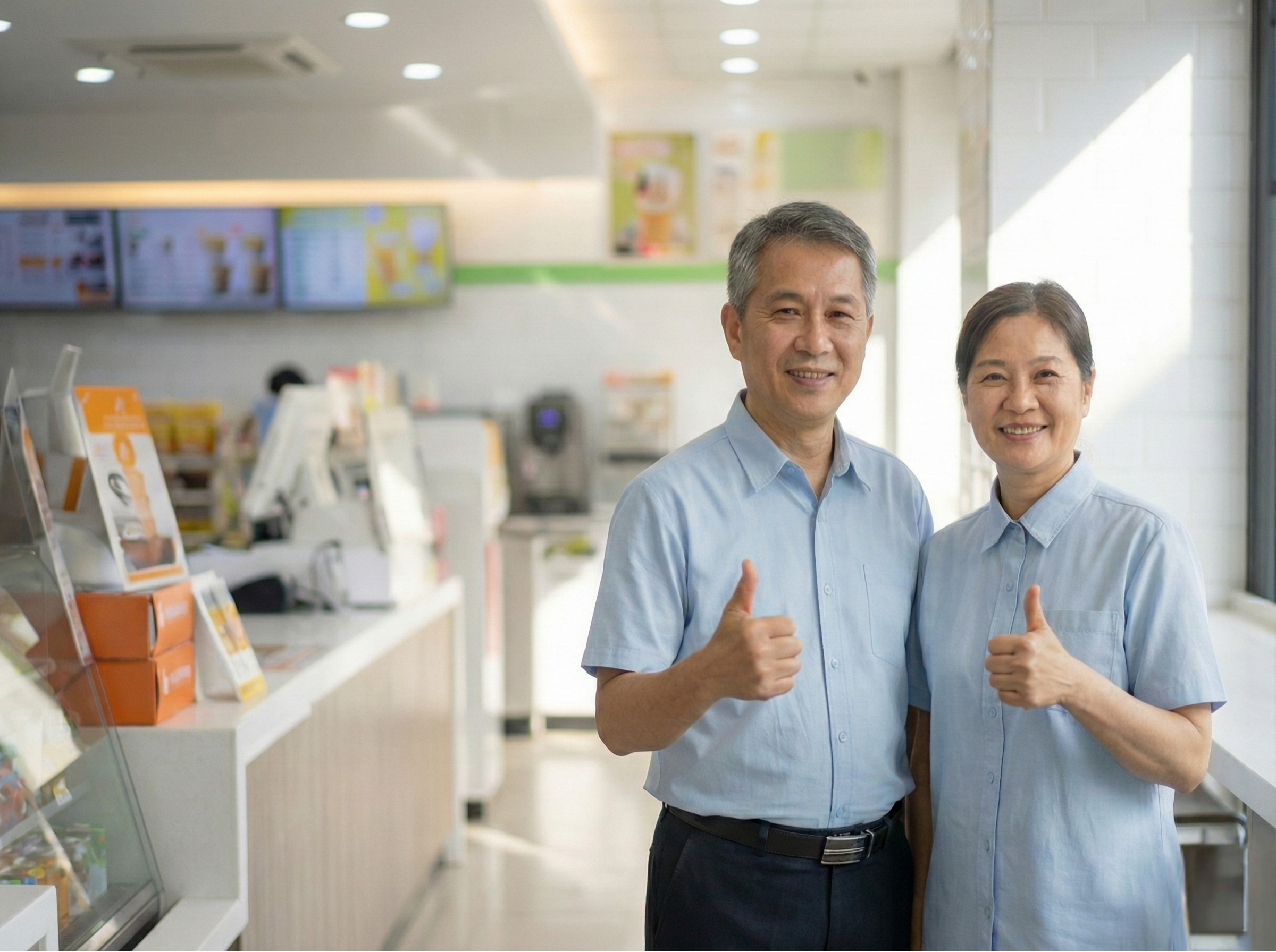「其實,中高齡夥伴會給自己壓力,擔心跟不上大家的速度,敬業精神讓他們更要求自己。」涵瑜提醒中高齡新鮮人不要給自己太大壓力,放下包袱,多次練習和認真學習就可以熟能生巧。姵榛也不藏私地分享經驗:「收銀的方案組合雖然很多變化,只要肯記,加上同一段時間都會是類似的組合,頂多第一天比較慌亂,之後每天按自然而然就記得!」